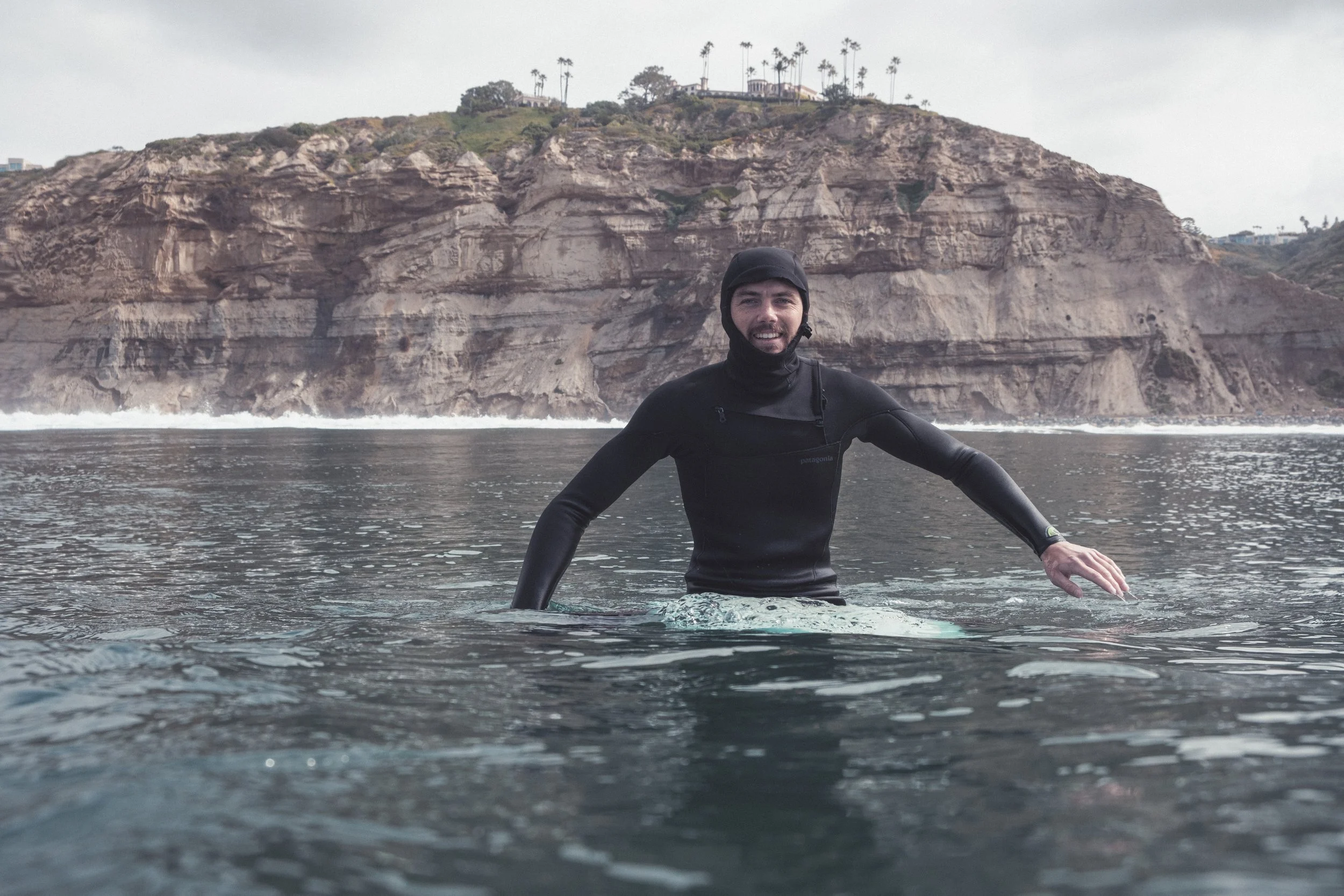 After a night of very little sleep, I drove with dreary eyes and parked in the dark, watched from the cliffs as the sun rose along with my own sense of nervous excitement, suited up and stepped forward on the trails that lay ahead. Hiking down to the beach, I practiced my breaths, prepared my body for an incoming flood of adrenaline; no coffee was needed on this morning. and Then, I sat on the shore for 30 minutes, scanning the lineup, searching for the familiar silhouette of my friend Erik. Finally, I gave in to the fact that today, there was very little familiarity to be found. I ran into a few friends on the sand but ultimately knew that this was a lonely endeavor, solely between me and the Ocean. With a final prayer and a deep breath, I pulled on my hood and stepped in.
